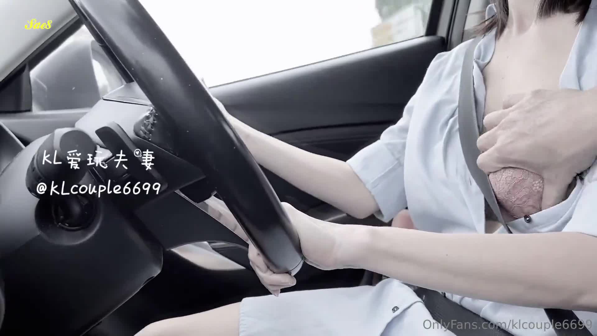 老婆开车坐在旁边很无聊摸大奶