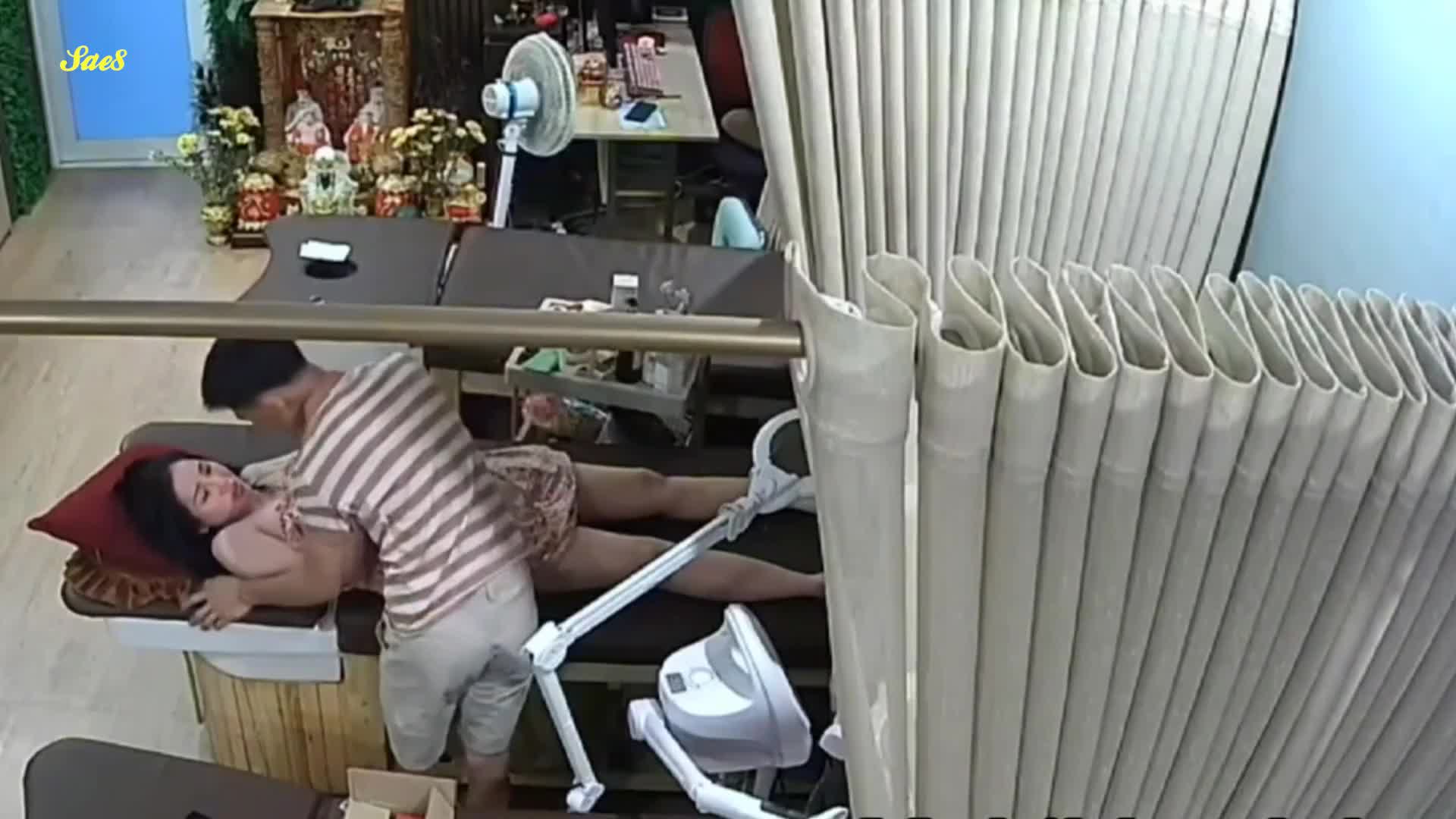 坚挺大奶白富美少妇美容院做保养被小哥勾引直接在按摩床上开干上了。