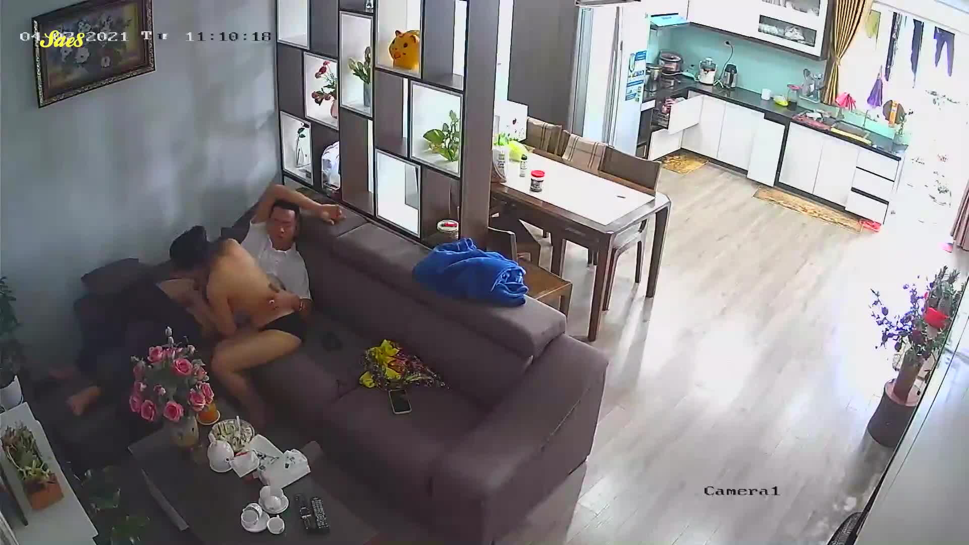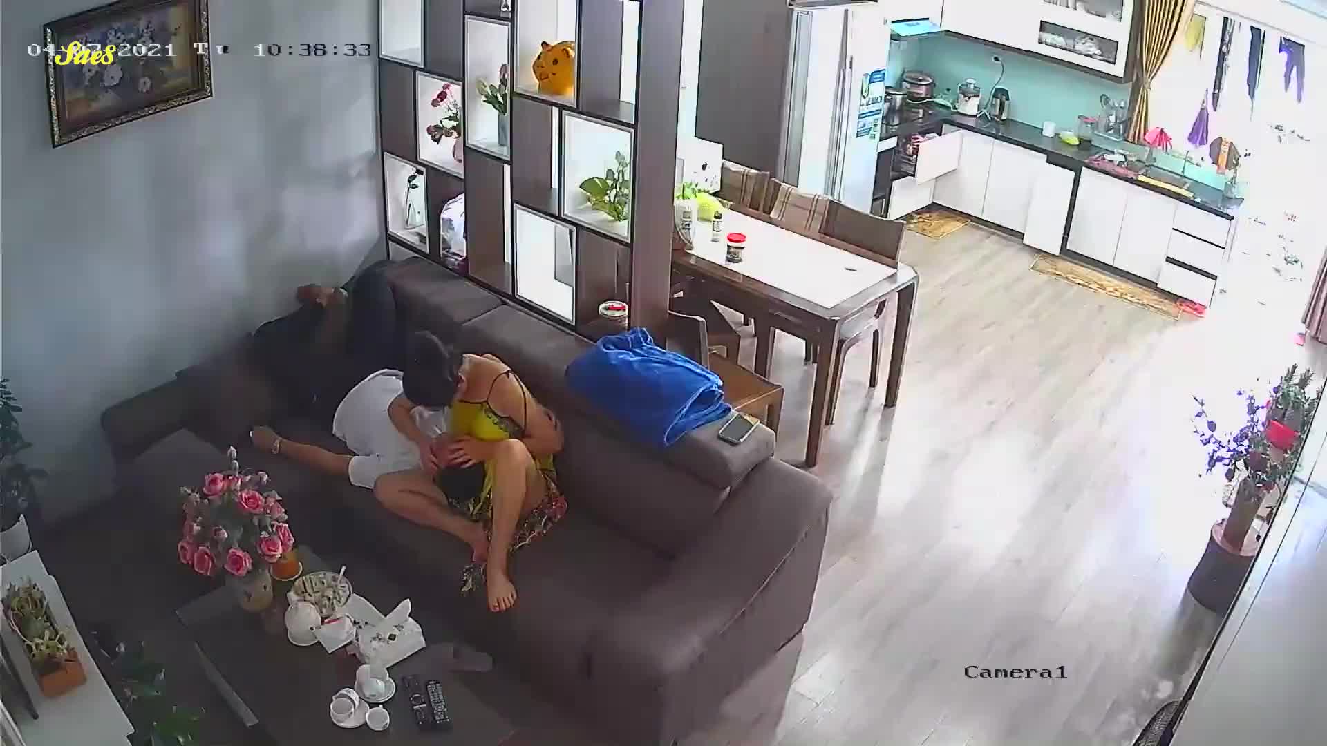 老婆正做着饭就被拉到沙发干了一炮